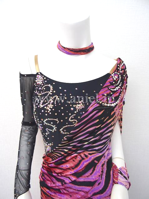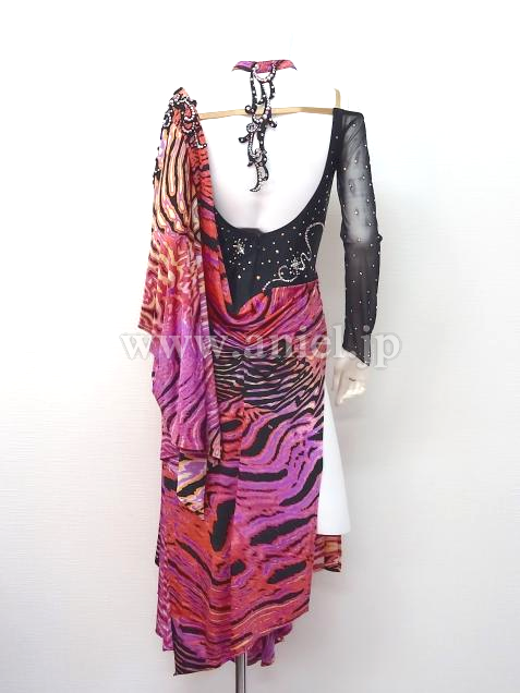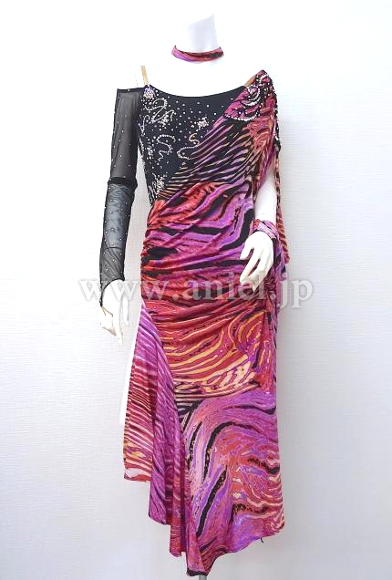 個性的な柄生地がドレープになったドレスです。