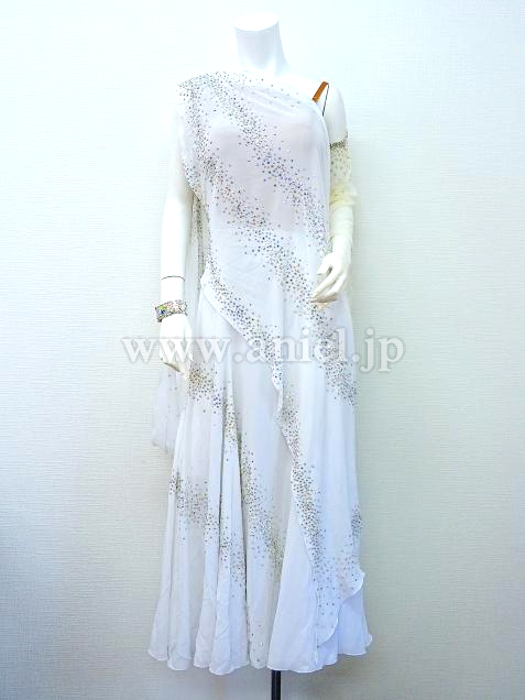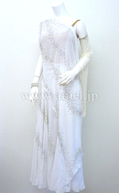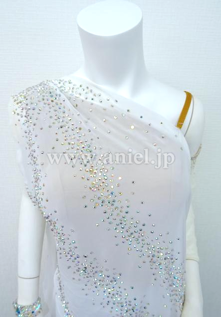 大きなフロートとスカートに流れる様に散りばめられたストーンが素敵です。