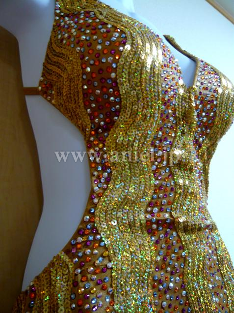 ストーンとゴールドのスパンコールがたくさん装飾されており、フロアでもよく目立ちます。