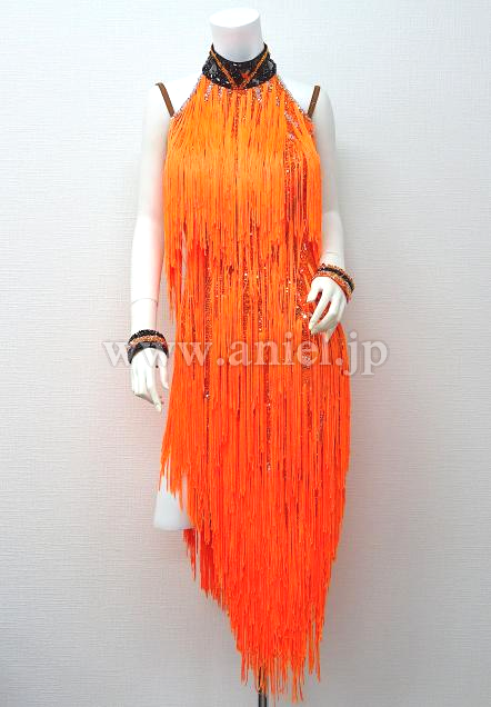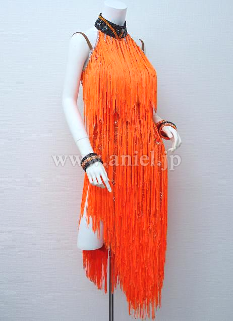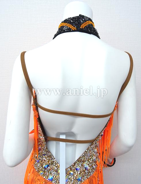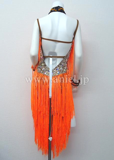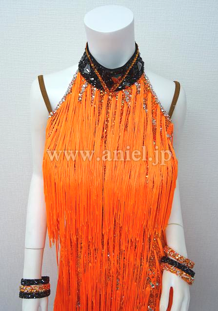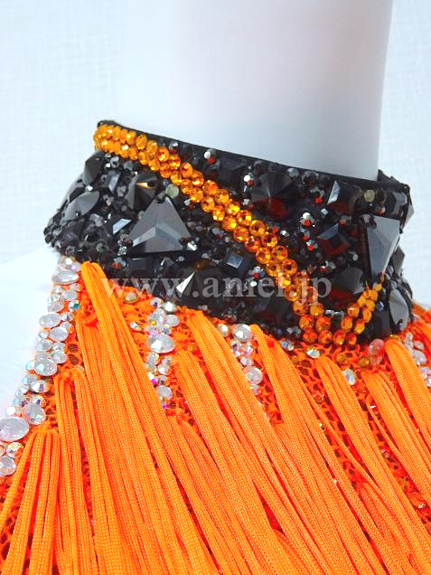 ボディのベースの生地はオレンジのレース生地を使っており、