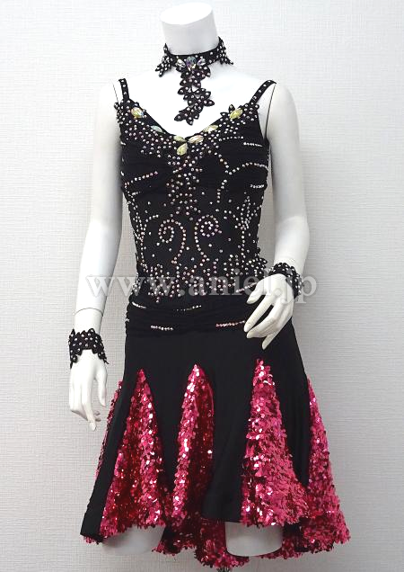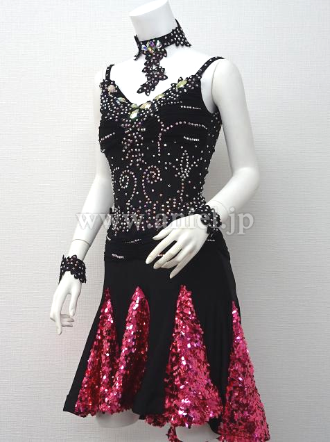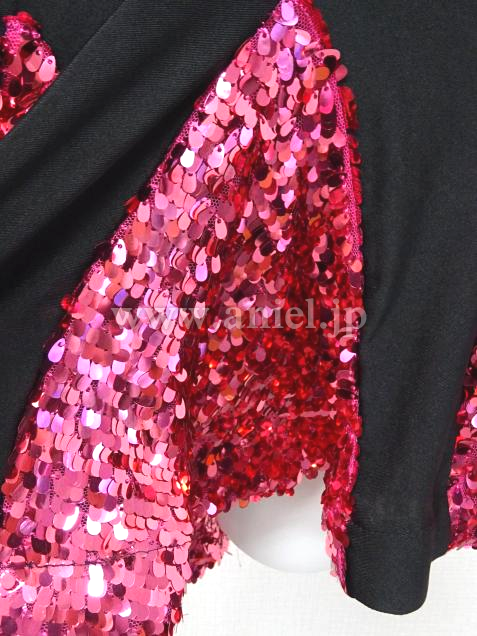 スカートはショッキングピンクのスパンコール生地を使用しており目立ちます。