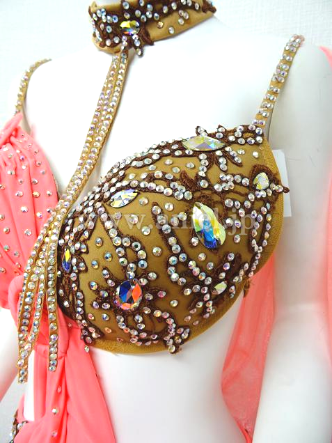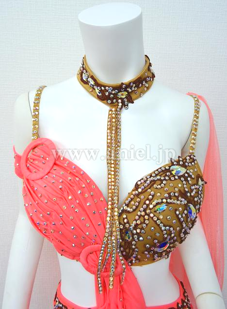 チョーカーと左胸はスキンカラーに茶色のモチーフとストーンで装飾されています。