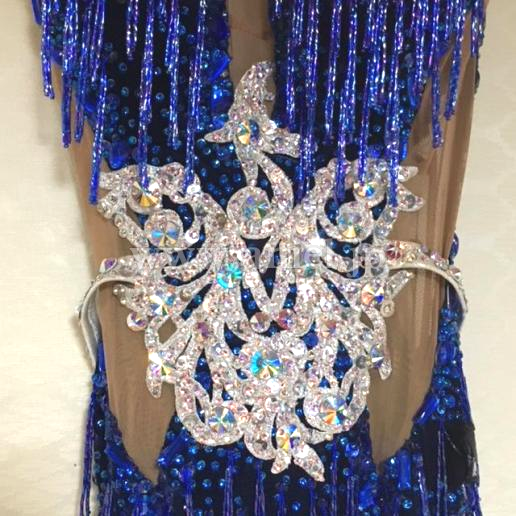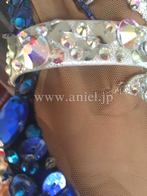 アニエルで購入後、裏表のウエストのスワロフスキーストーンに付け直し全てしております。かなり、キラキラとゴージャスでフロアで目立ちます。