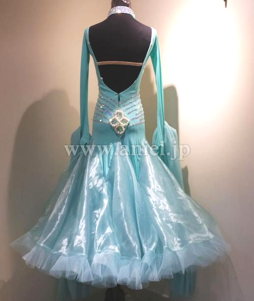 水色のボディにストーンのラインが施されているドレスです。
