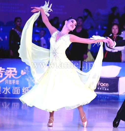 鮮やかなカラーがフロアでとても目立つドレスです。