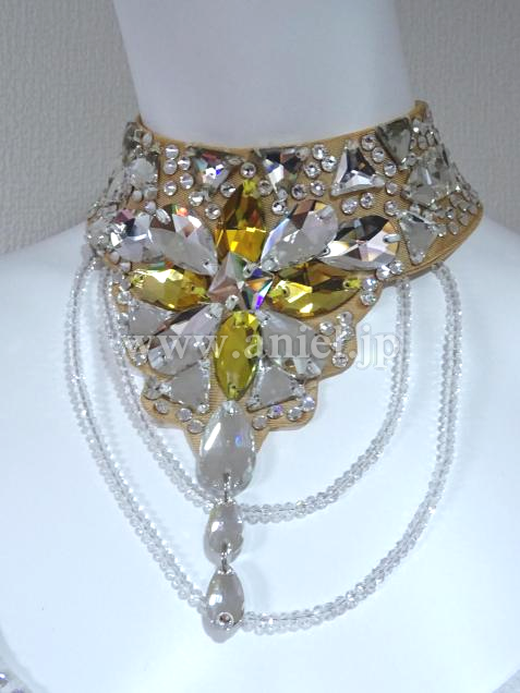 ネックレスや背中の装飾はストーンびっしりで非常に豪華。