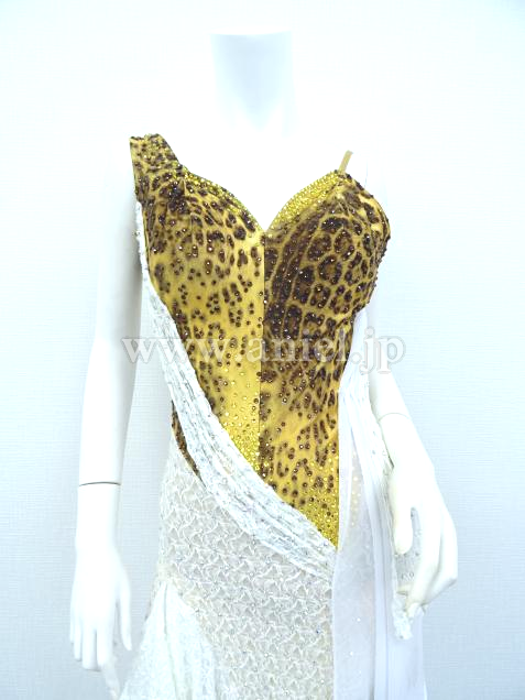 豹柄のボディに白の布がかけられたドレスです。