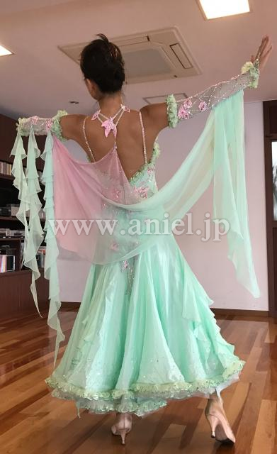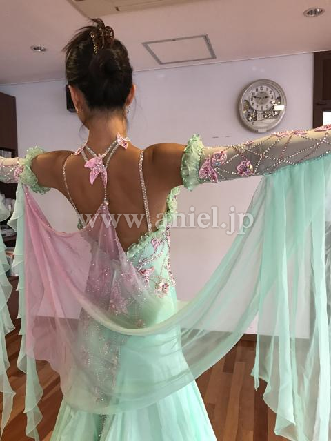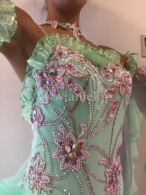 とても華やかで、鮮やかなペパーミントグリーンのドレスです。