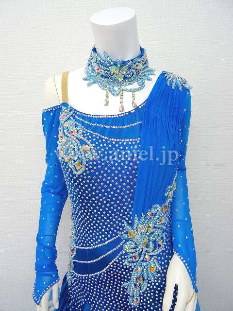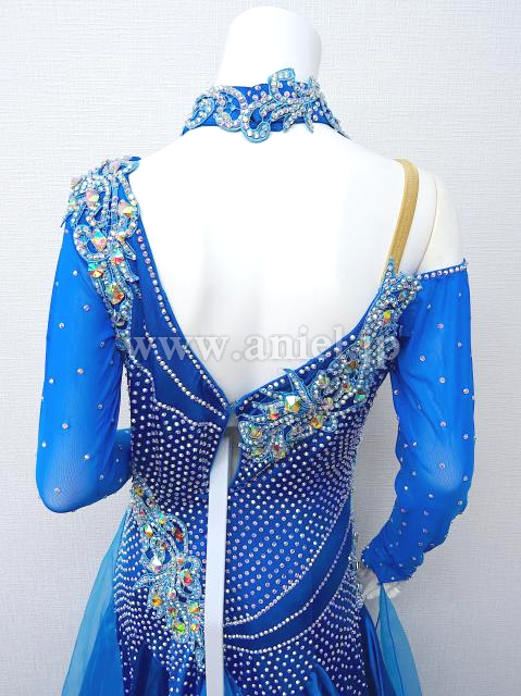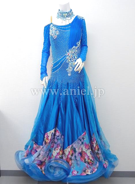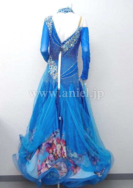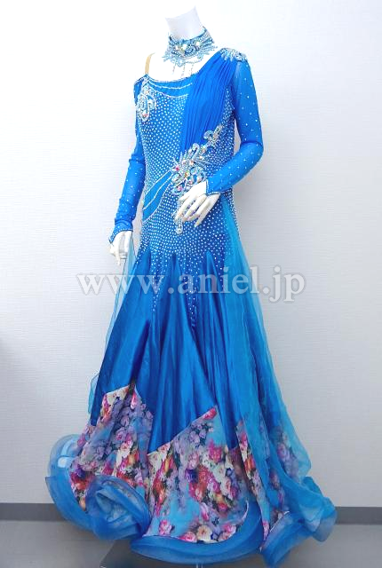 綺麗なコバルトブルーに花柄スカートが可愛らしいドレスです。