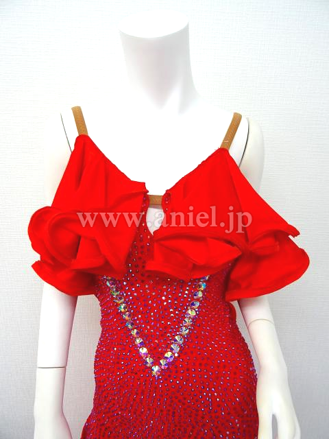 赤のシンプルなワンピースドレスです。