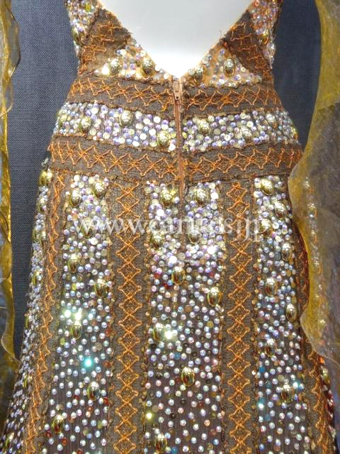 縦ラインが強調されたスカートはたくさんのストーンやパールで装飾され非常に華やかです。