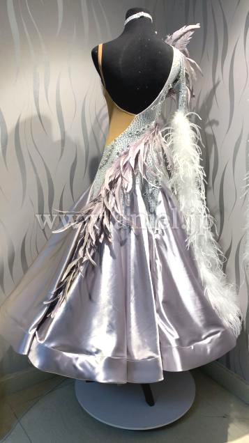 胸元とヒップの立体的な羽根飾りがゴージャス。
