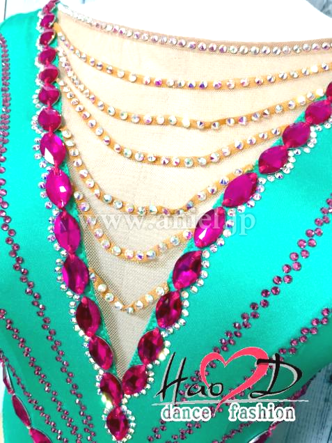 中心に交差するVライン&クロスラインをピンクの大粒ストーンで描き、縦長効果UP