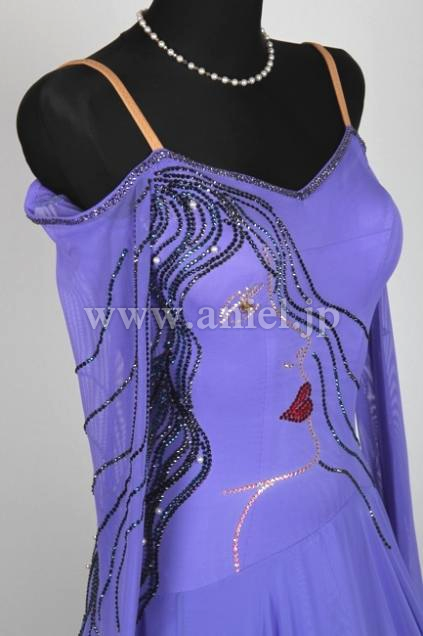 「Lilac Face」の名前の通りボディに大きく女性の横顔がスワロフスキーストーンで描かれているとても個性的なドレスです。