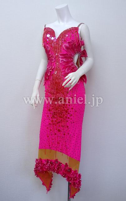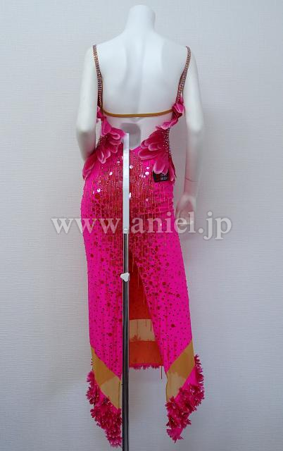 Sサイズですが、後ろが少し長いので160センチ以上の長身の方にぴったりです。裾にも小さなお花が付けられていて、大胆さと繊細さを兼ね揃えたドレスです。