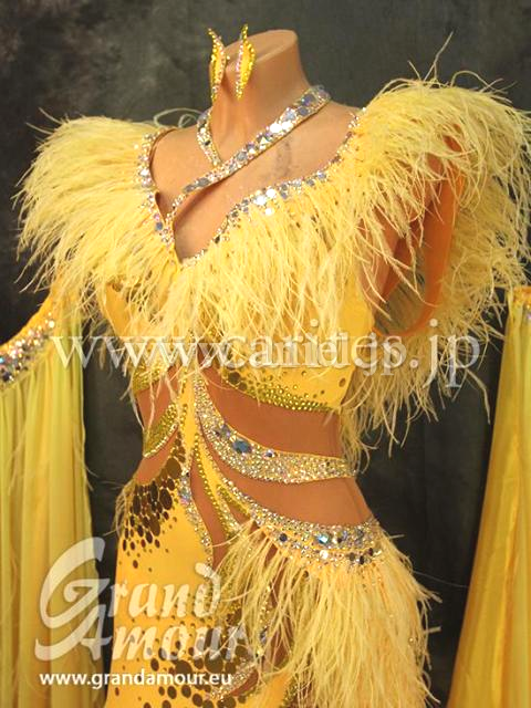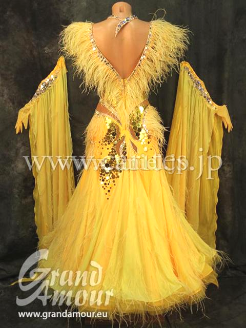色はサフロンとレモンイエローの組み合わせです。このドレスで東京ダンスアカデミーで躍進賞を受賞しました。とても縁起のいいドレスです。