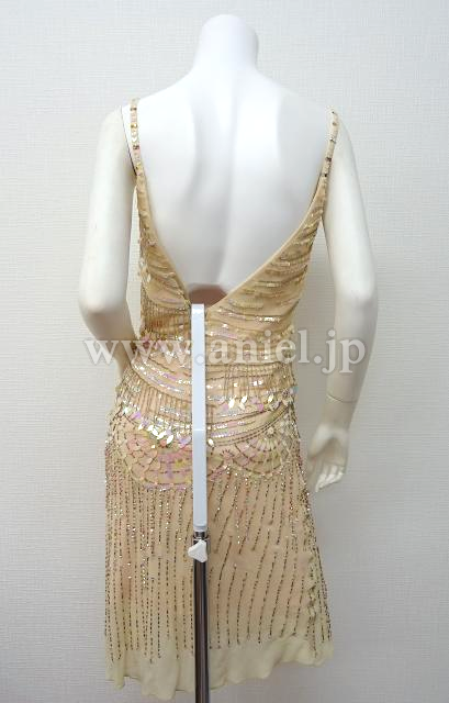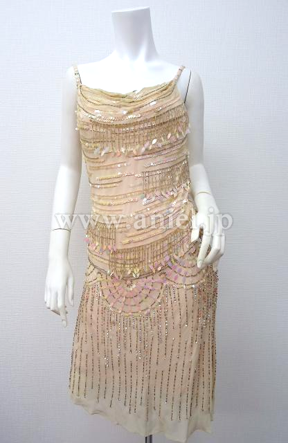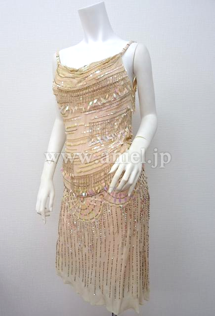 ピンクベージュのフラッパー風ドレス。