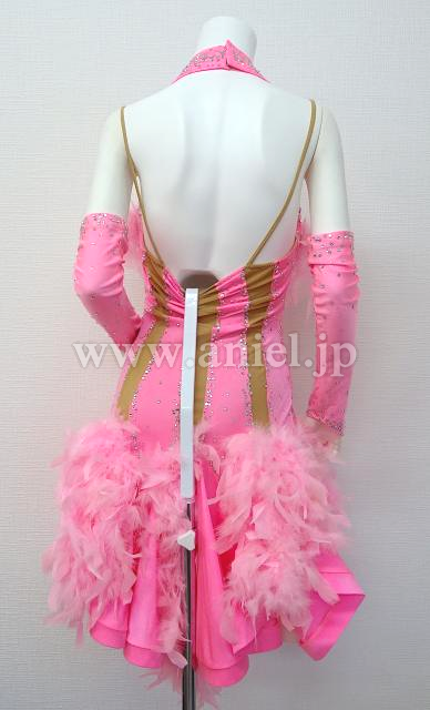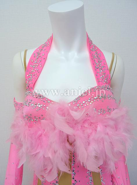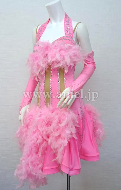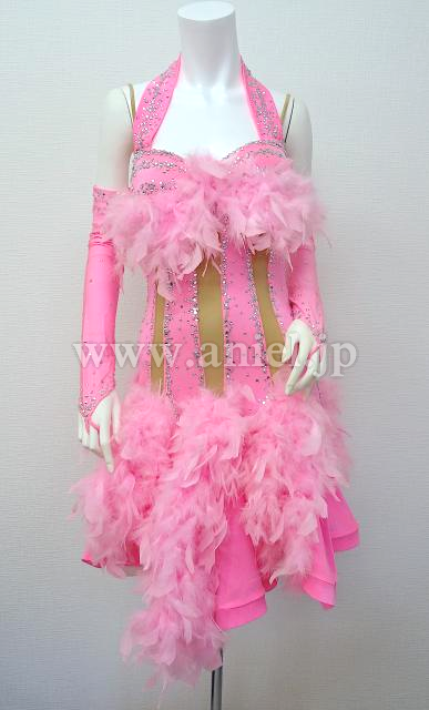 胸元とスカートのピンクの羽が可愛いドレス。