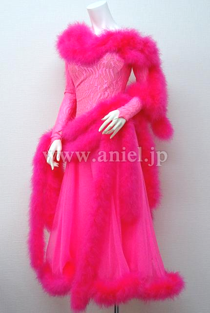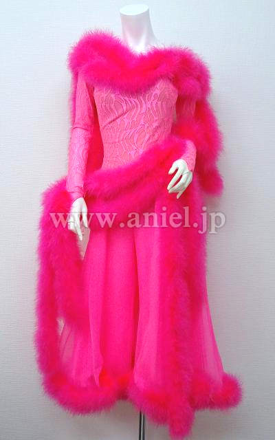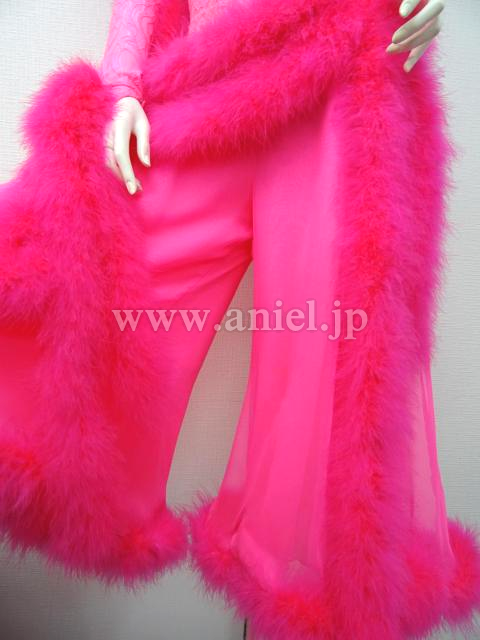 ショッキングピンクのキュロットドレス。ワイドパンツ型です。