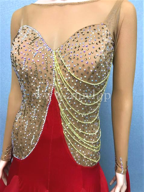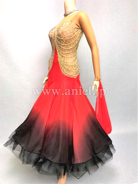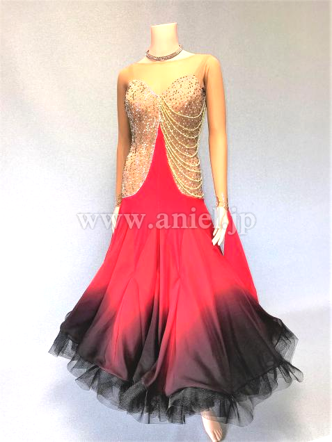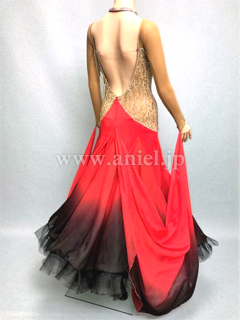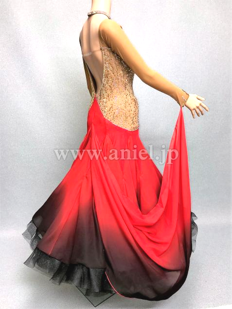 赤に黒のぼかしを入れたインパクトのあるドレスです