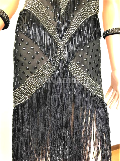黒のラインストーン、ビーズ、フリンジとリッチ感が漂っています。