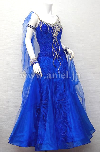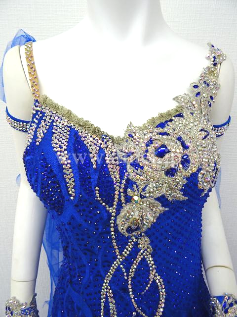 素敵な刺繍の生地を使ったロイヤルブルーのドレス。
