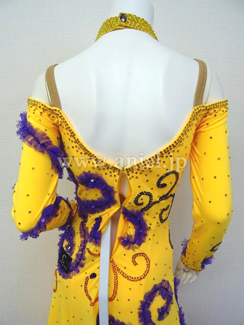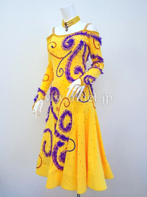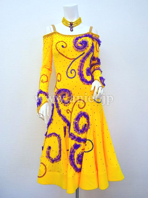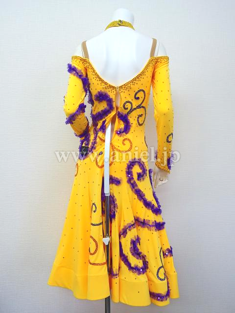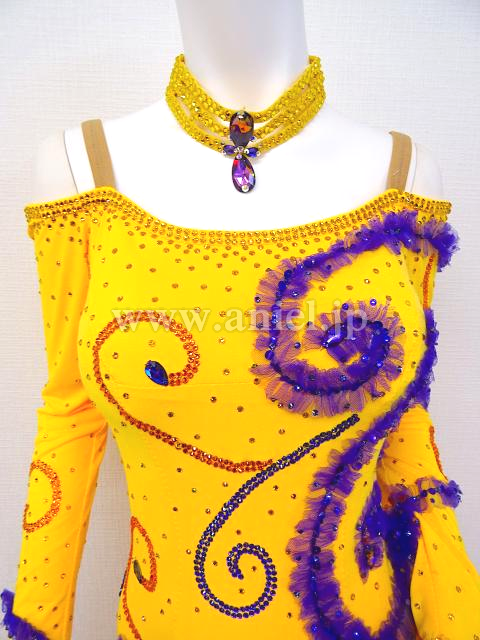 鮮やかな黄色に紫で模様が装飾されています。