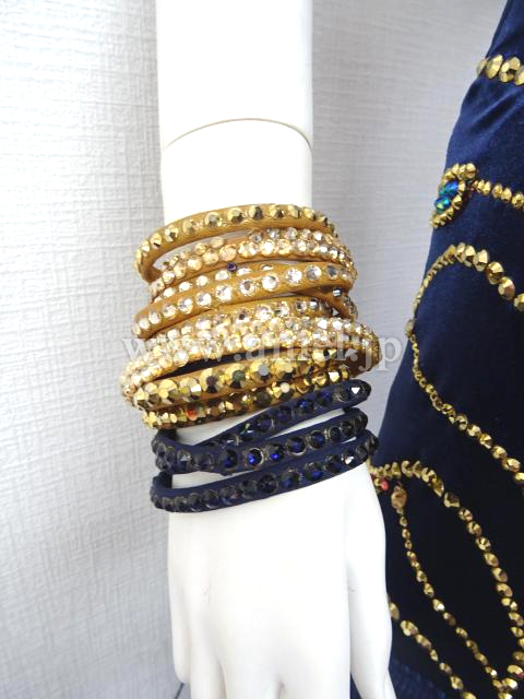 石びっしりの豪華なバングルが12本、孔雀モチーフの美しい髪飾りが付属しています。