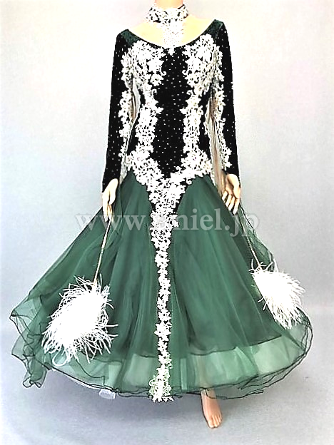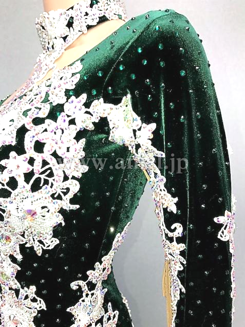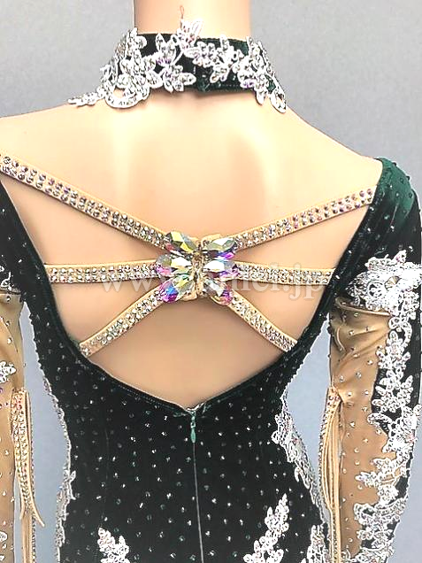 袖のデザインも凝っていて、袖口のフロートはチュール地と、オーストリッチファ―のダブル仕様になっており、細部にまで手をかけ、リッチ感漂う1着になっています。