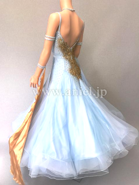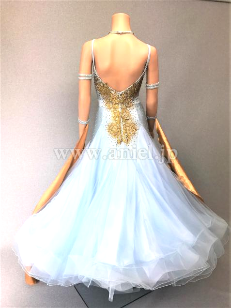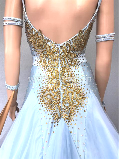 ラインストーンを施したゴールドレースを中心にあしらい、すっきりと仕上げています。
