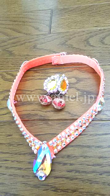 ドレス付属のネックレスと羽根の髪飾り、スワロフスキーのイヤリングもお付けします。