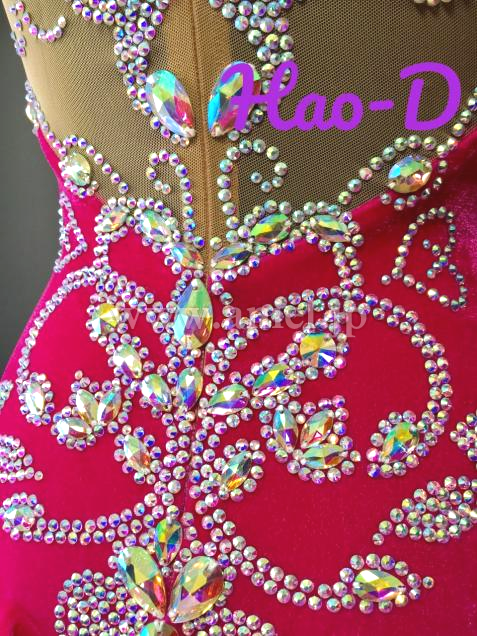 オーロラ石を大量に使い、大粒はすべて縫い付け、細かくて丁寧に製作