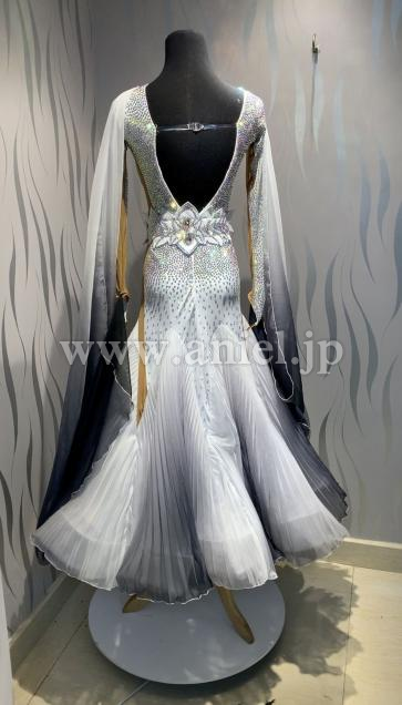 グラデーション生地のフロート、スカートが美しいドレスです。