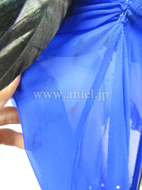 スカートに黒羽根の色移りがありますが羽根の装飾で隠れているので着用には問題ありません。スカートの裾が少し破れていましたが補修済みです。