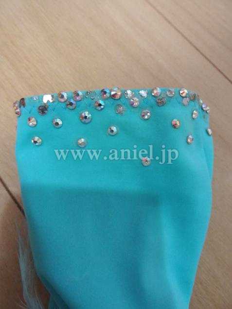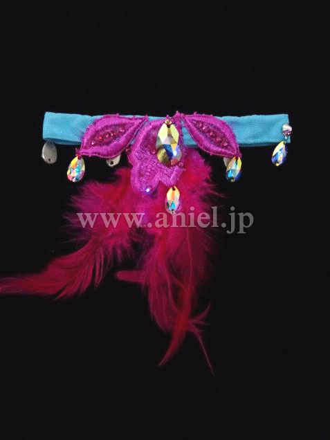 羽根はドレスと同じ水色と濃いピンクを使っています。