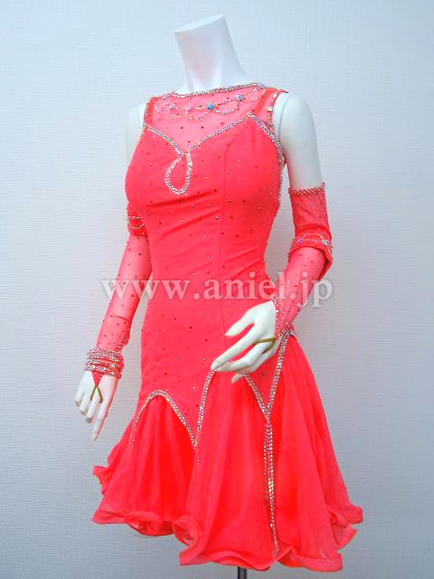ピンクのミニ丈ドレス。