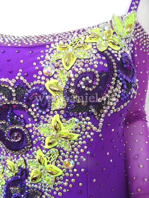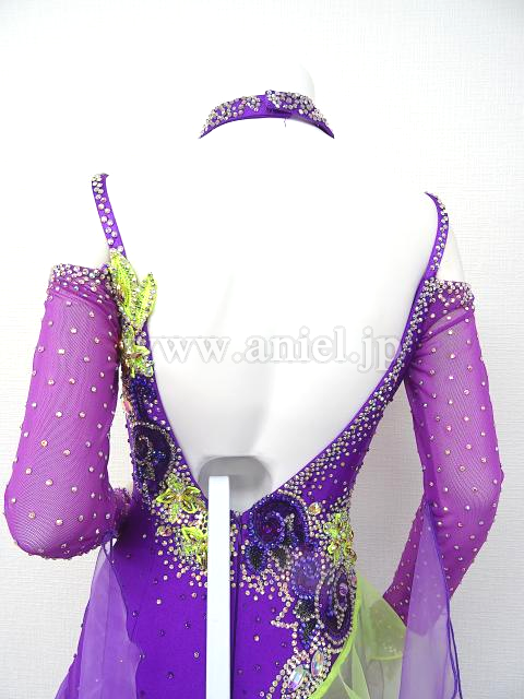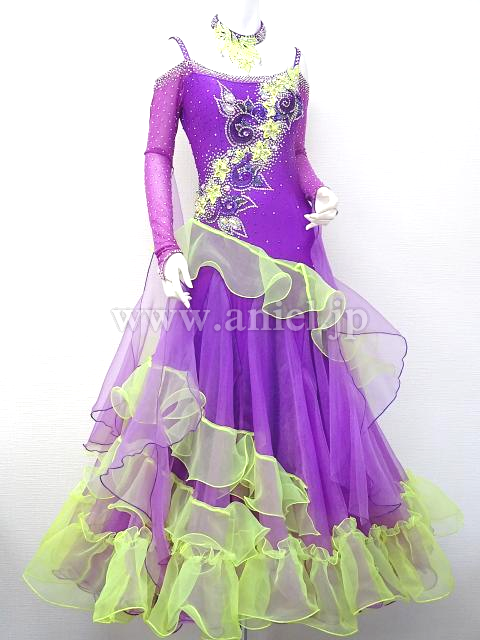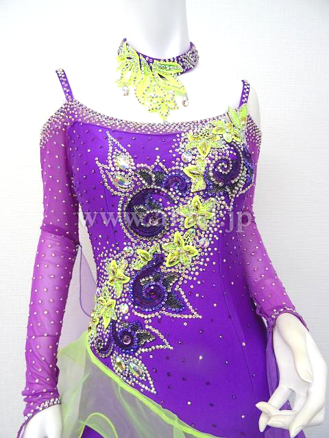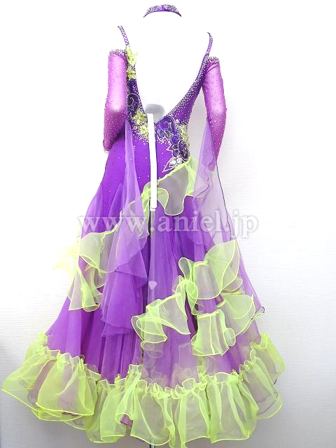 紫と蛍光黄色のドレスです。