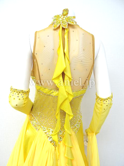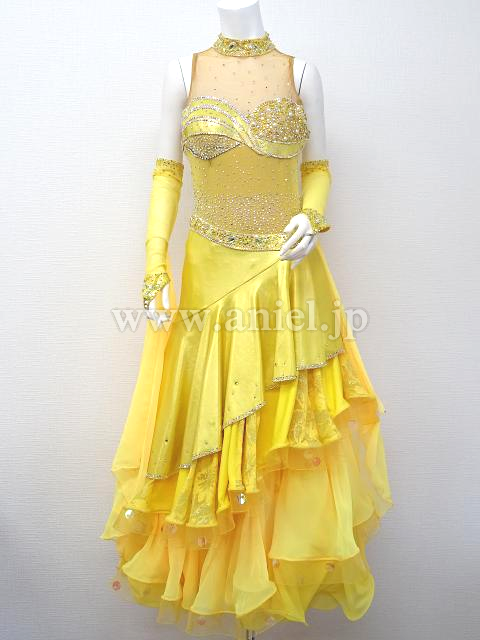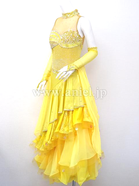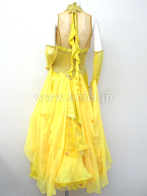 黄色のティアードスカートのドレス。
