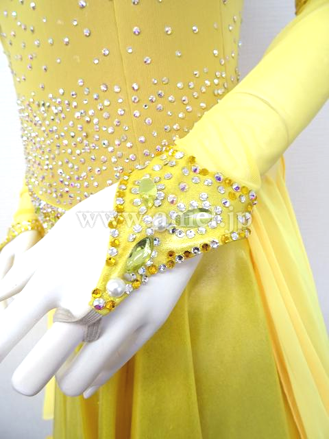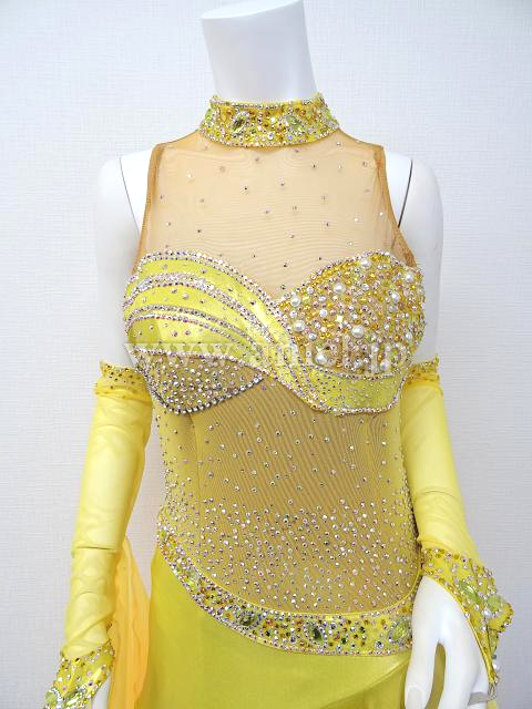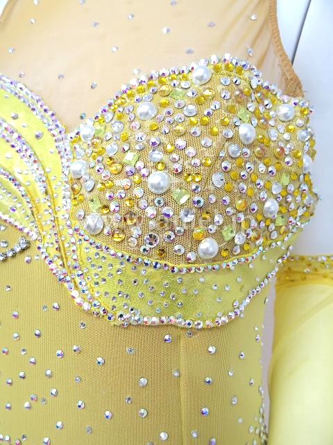 首元と胸元の装飾にいろんな種類のストーンが使用されています。