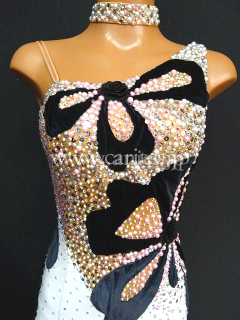 憧れの白のカラーで上品にまとめられています。ボディ部分のスキンカラー生地の上にはピンクパールを使用し、ラブリーさもプラス。