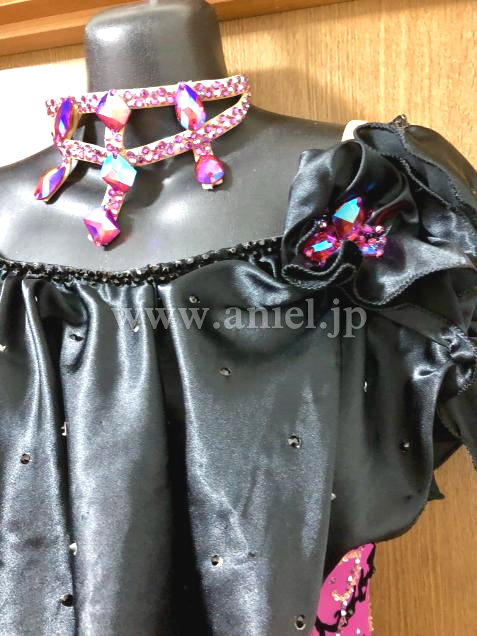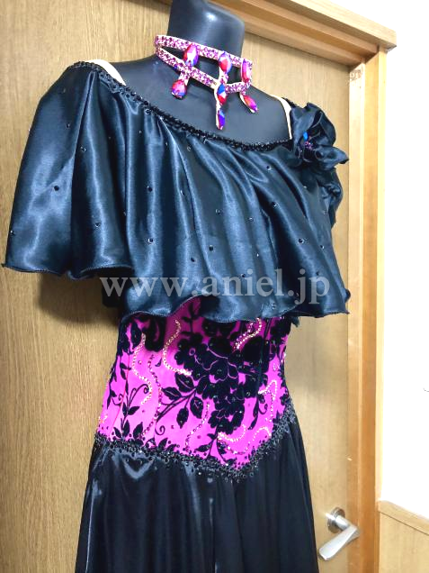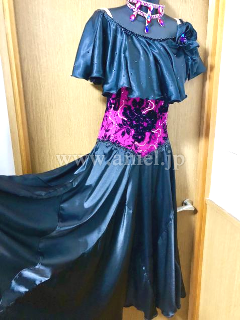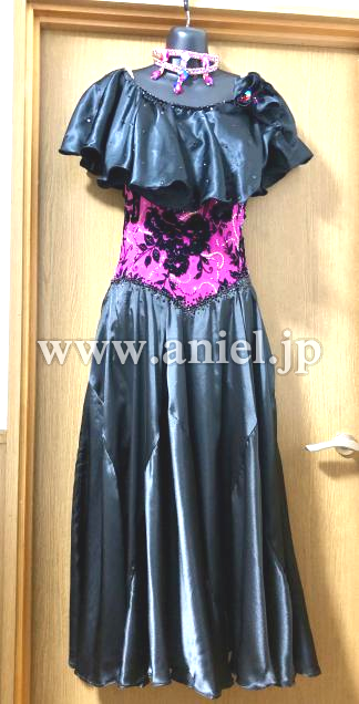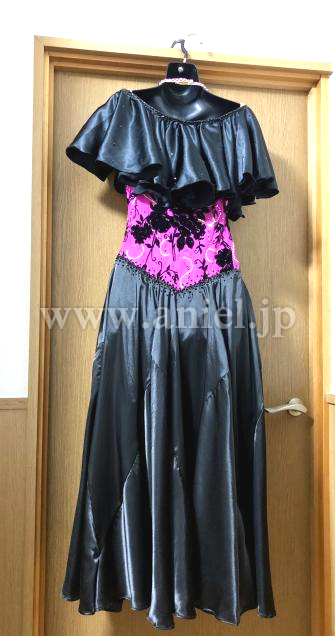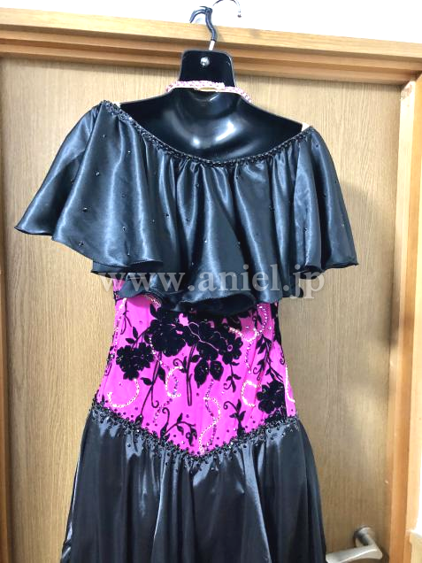 ビビッドなピンクと黒のコントラストが鮮やかドレスです。パソドレスですが、アメリカンスムースなどにもお使いになれます。