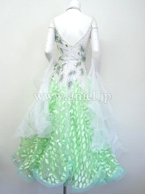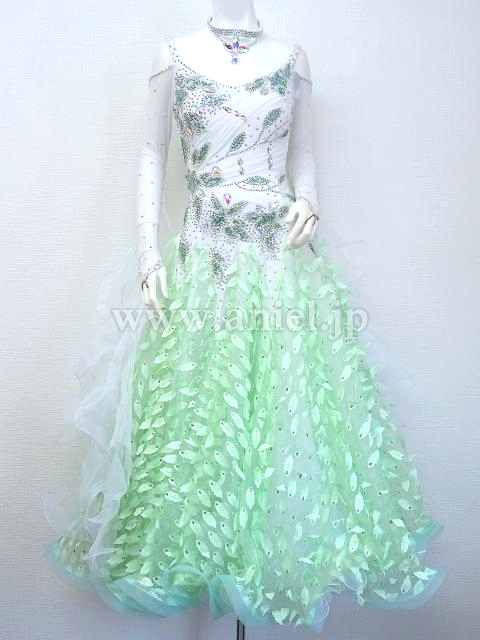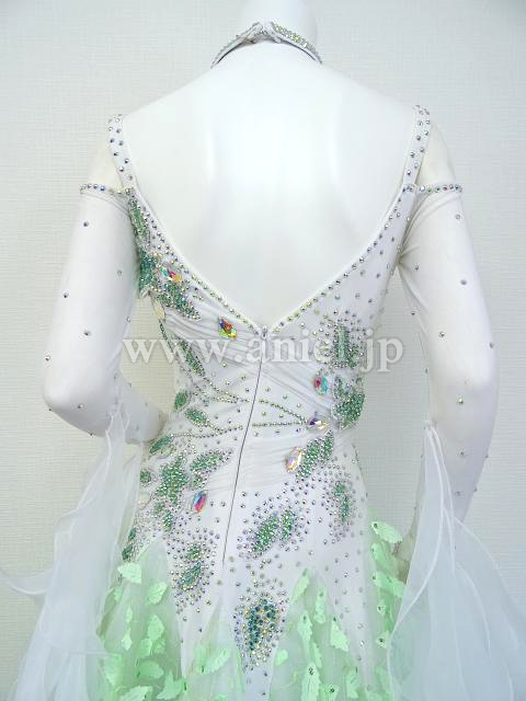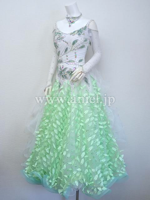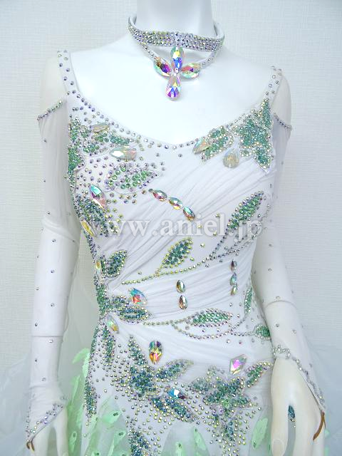 白にグリーンモチーフが爽やかなドレス。