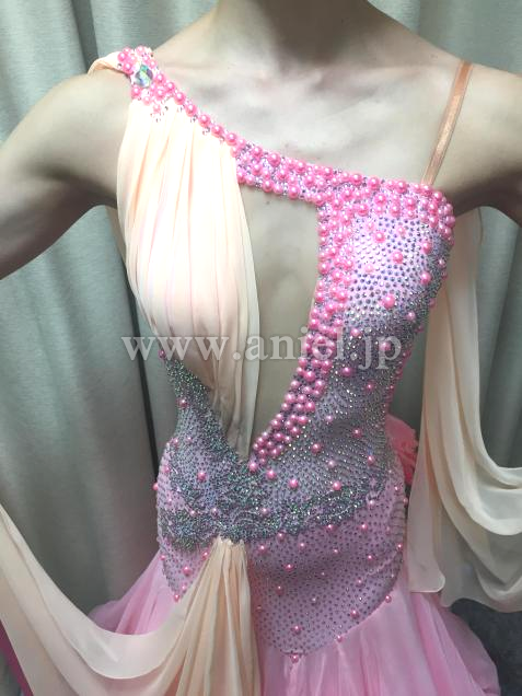 ドレープはピンクに映える淡い橙色で外に飛ぶようにピンクのリボンテープが付いています。