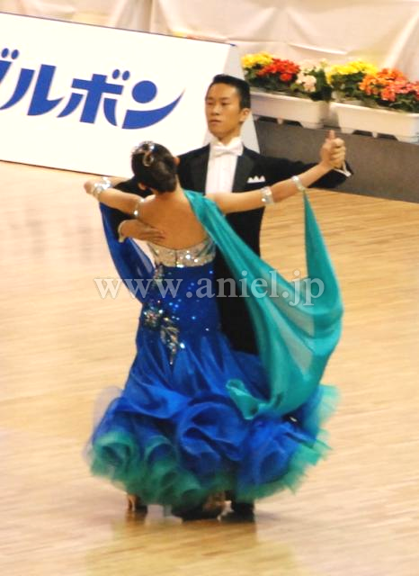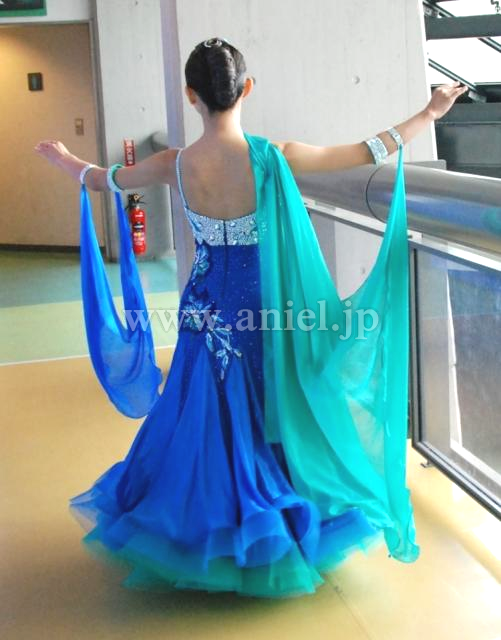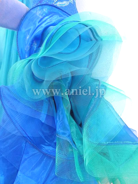 スカートは非常に軽いサテンシフォンでボリュームはありますが、とても軽く踊りやすいドレスです。