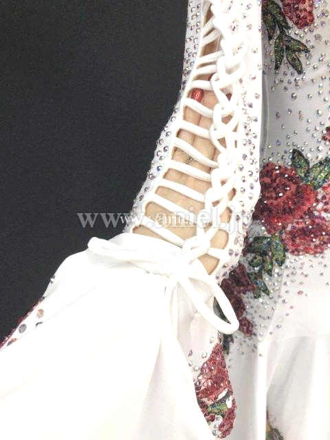 腕には編み上げのようなデザインですっきりと魅せます。