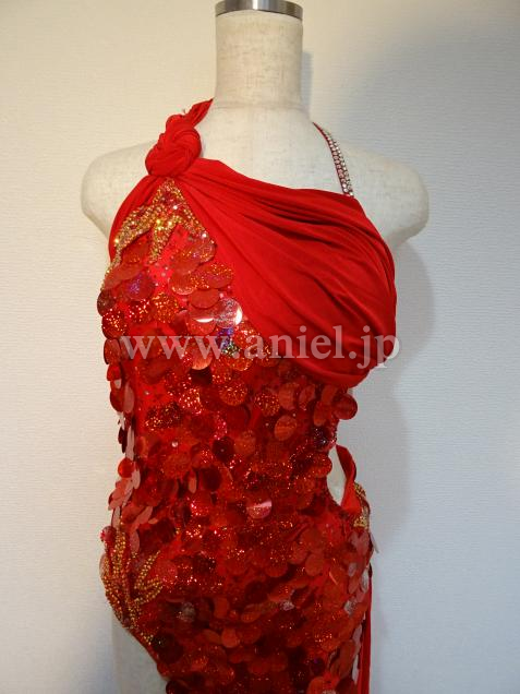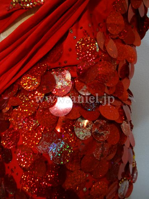 大きめのスパンコールを使用したドレス。