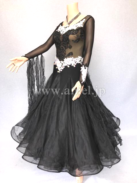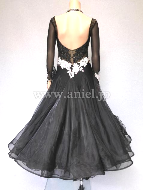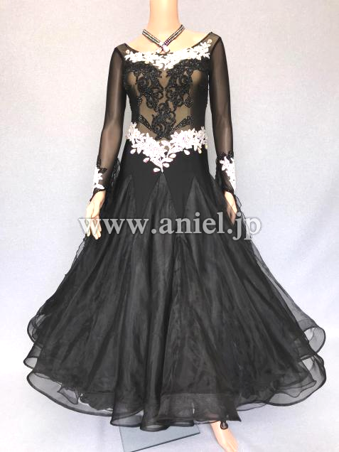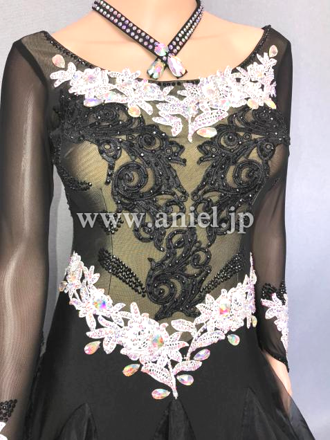 A309・黒白パールルンバドレス