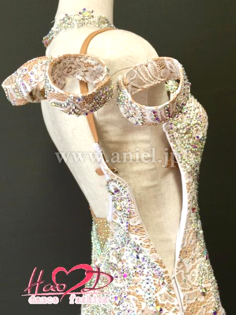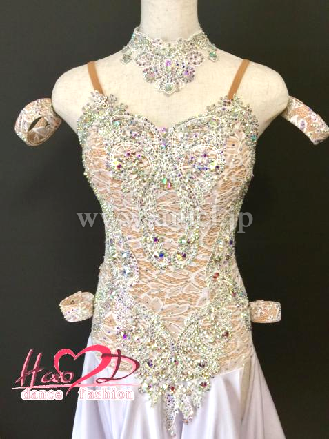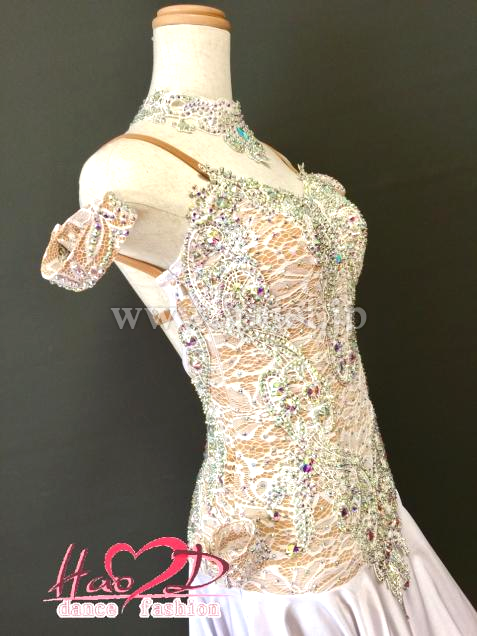 肌色2wayストレッチ生地にレースを重ねたシースルー風