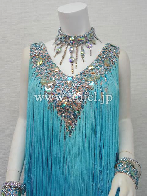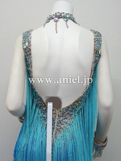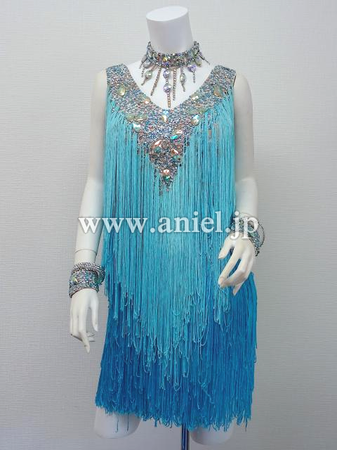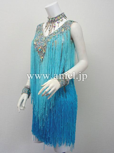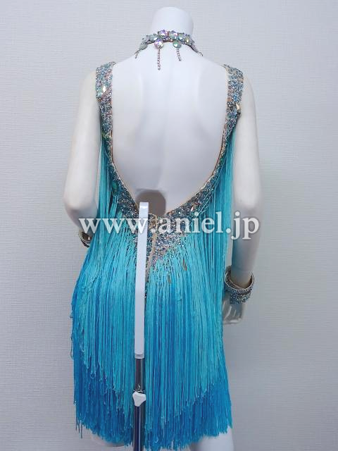 水色のグラデーションフリンジドレス。