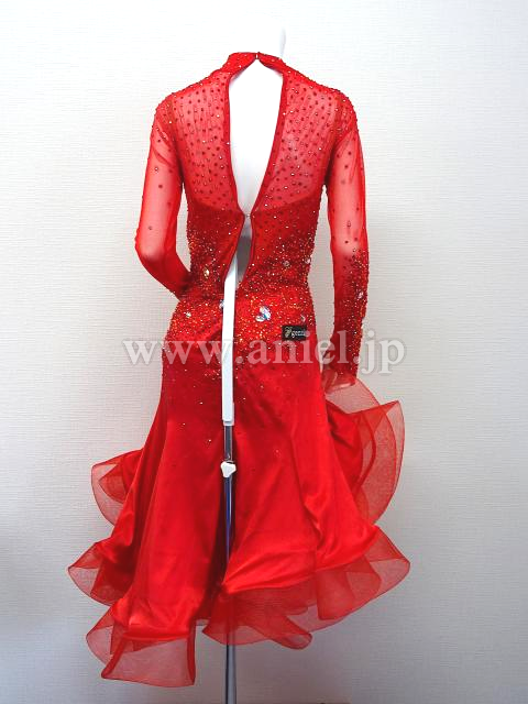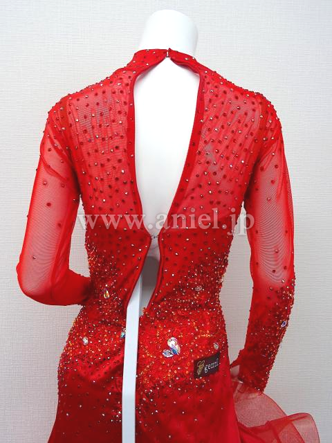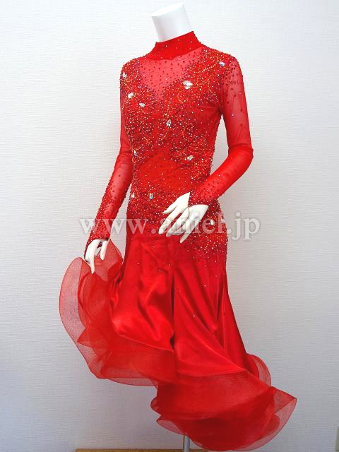 赤のハイネックロングスリーブドレス。